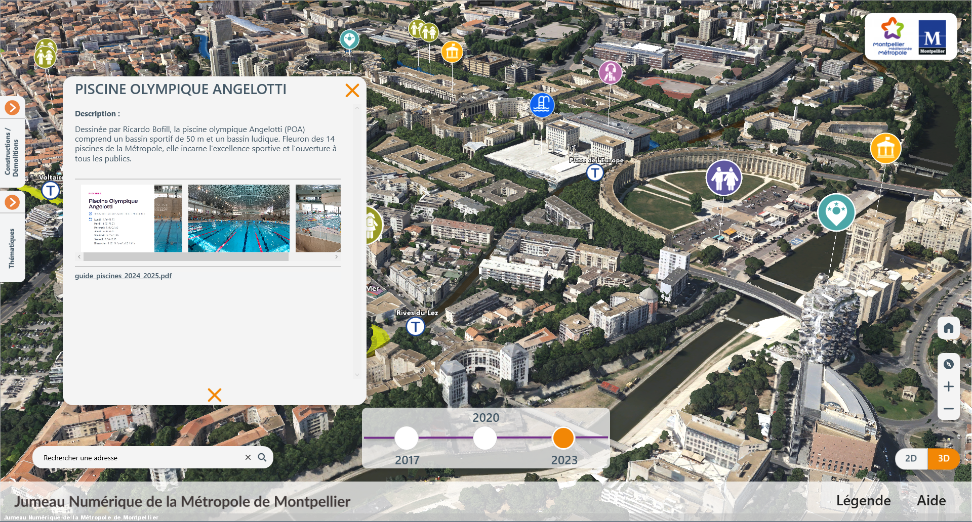 IGO has developed a 3D application for the Metropole de Montpellier, designed for an interactive terminal installed in the lobby of the Hôtel de Ville and accessible to the general public.